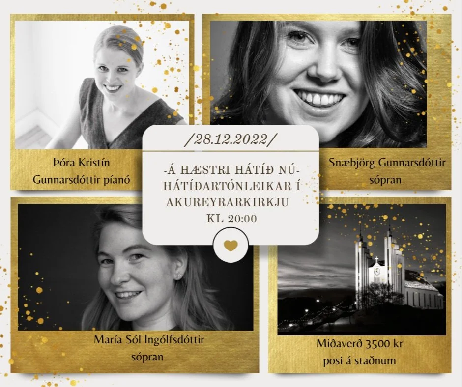 Snæbjörg Guðmunda Gunnarsdóttir soprano singer and Þóra Kristín Gunnarsdóttir pianist both live abroad, Snæbjörg in Stuttgart and Thora in Zurich. The first concert as a duo is a tribute to their home country and their respective countries of residence. The first part of the repertoire contains some of the best of German and Swiss late Romanticism: Works by Wagner, Strauss, Wolf and the Swiss Paul Juon and Othmar Schoeck. The second part is dedicated to Iceland with music including works by Atli Heimir Sveinsson, Jórunn Viðar and Tryggvi M. Baldvinsson, with folkloristic elements, colourful melodies and even an Icelandic tango.